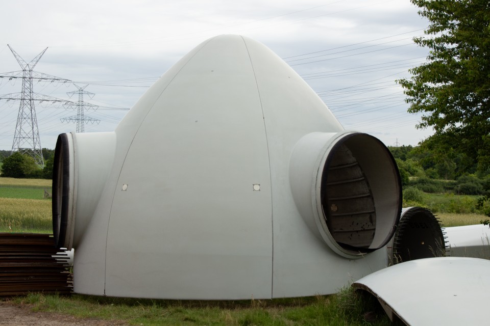 Während meiner Recherche rückte ein wachsendes Entsorgungsproblem in den Fokus: ausgediente Windkraftanlagen. Besonders problematisch sind Bauteile aus glasfaserverstärktem Kunststoff (GFK), wie Rotorblätter oder Gondelgehäuse. Diese Faserverbundwerkstoffe verfügen über hervorragende technische Eigenschaften, sind jedoch sehr schwer mechanisch oder stofflich zu trennen. Da es sich um Duroplaste handelt, lassen sich die Materialien nach dem Aushärten nicht mehr schmelzen oder einfach auflösen, was eine Zurückgewinnung der Stoffe extrem schwierig macht.