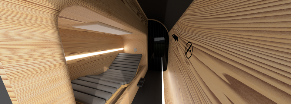 Dieser Pavillon schafft einen Raum für Ruhe, Entspannung und mentale Erholung im Alltag. Inspiriert durch Beobachtungen und Umfragen, die zeigten, dass viele Menschen Schwierigkeiten haben, Energie und Fokus zu behalten, verbindet das Projekt wissenschaftliche Erkenntnisse über kurze Pausen und Power-Naps mit durchdachtem Design.