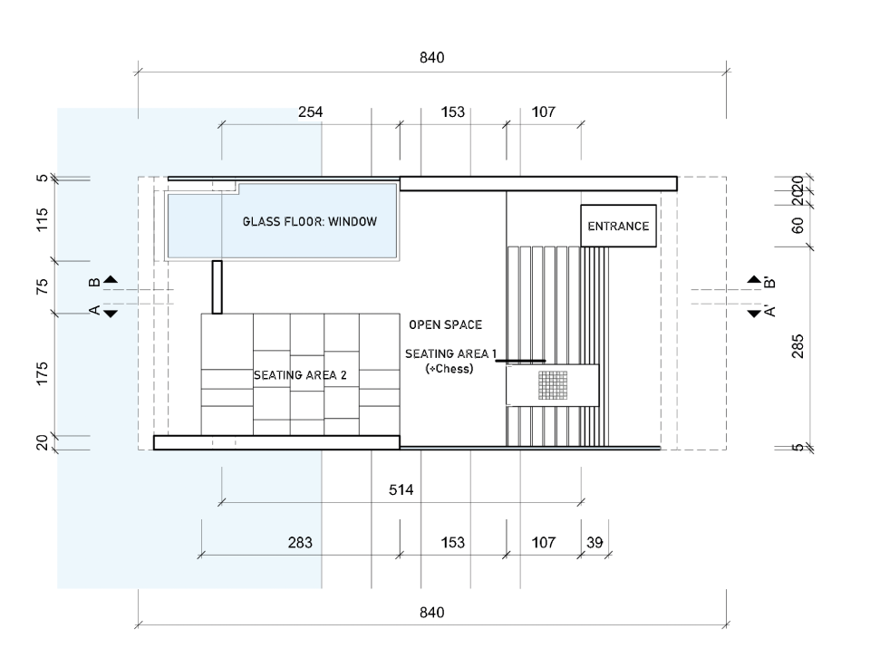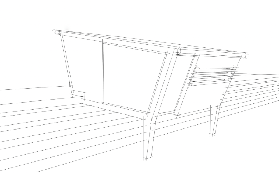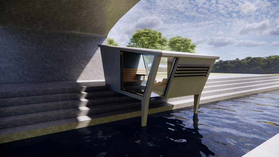 Die elegante Zurückhaltung des Pavillons harmoniert mit den bestehenden Stein- und Betonelementen des Parks und schafft eine fließende Verbindung zwischen der belebten Stadtstraße und dem ruhigen Flussufer. Über dem Wasser erhöht, bietet er Besucher:innen eine besondere Perspektive, abseits von Fußwegen und urbanem Lärm.